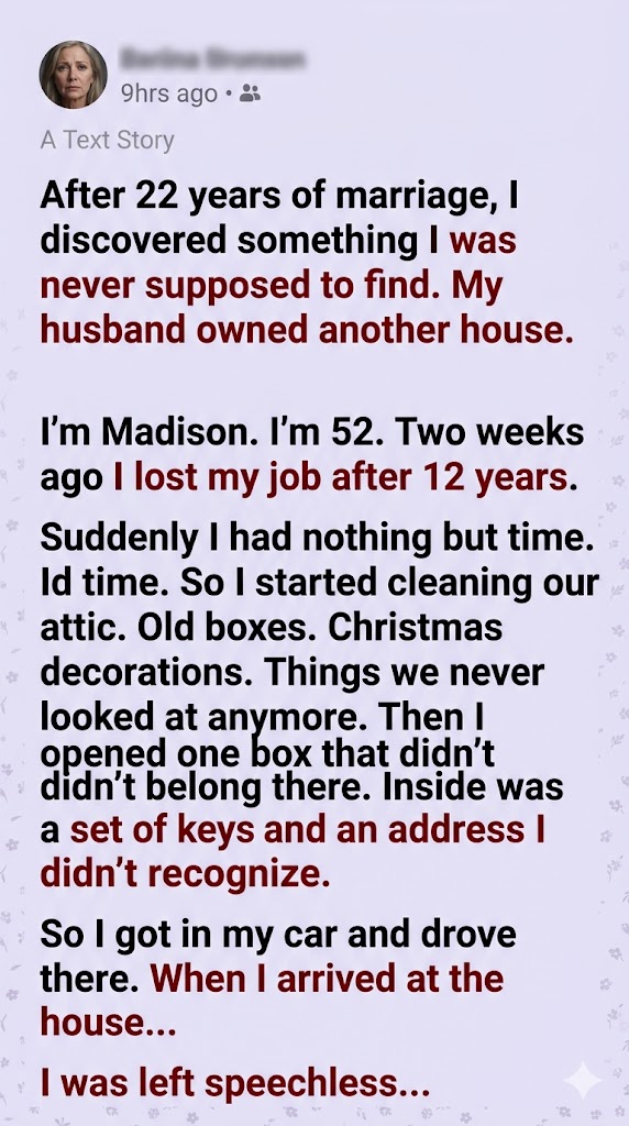 I lost my job, but the hidden keys I found in my attic ended up costing me my entire 22-year marriage. 🗝️💔 Wait until you hear whose picture was hanging in his secret house…