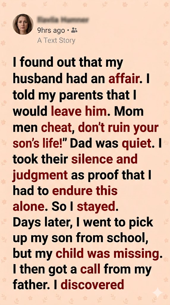 “He’s safe with me, sweetheart,” my dad’s voice was steady, a stark contrast to the frantic, echoing panic in my chest. “I picked Leo up early. Come to the address I just texted you. And whatever you do, do not go back to that house.”