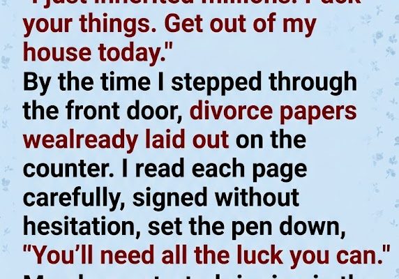 Scott was leaning against the fridge, swirling a glass of expensive scotch he’d clearly just bought on credit. “I had my lawyer draft them up an hour after I got the news. I’m taking the house, the cars, and my full inheritance. You keep your little 401k and whatever is in your checking account. Sign them, pack a bag, and leave.”