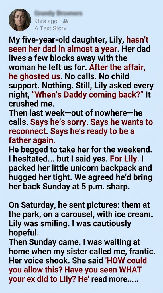 My Lily, my baby girl who loved her waist-length, golden curls more than anythingâwho pretended she was Rapunzel every single nightâwas unrecognizable. Her hair was gone. It had been chopped into a severe, uneven pixie cut and dyed a harsh, jet black to match his girlfriendâs hair. She was wearing heavy makeup and an outfit that was far too mature for a five-year-old.