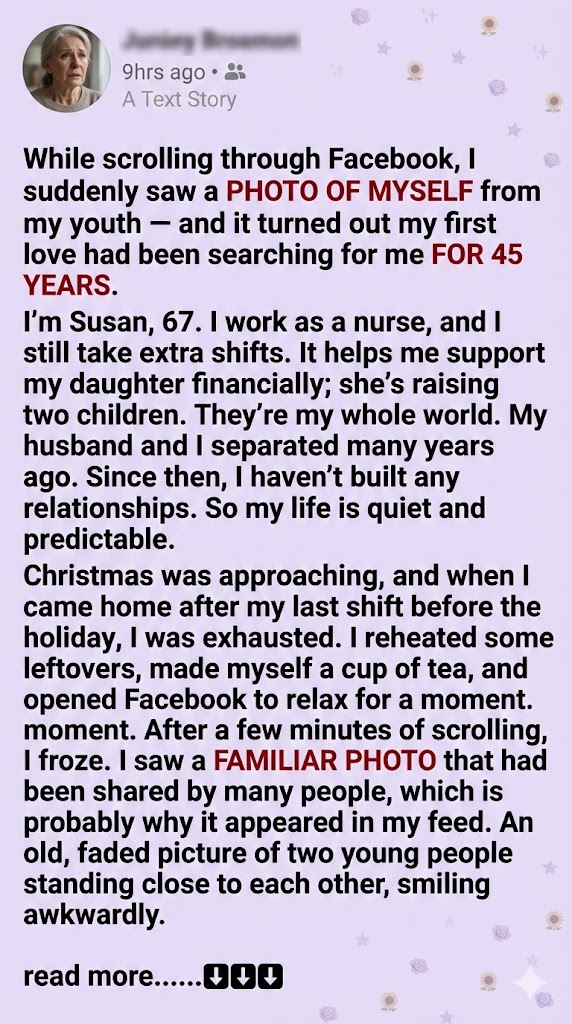 Beneath the photo was a message: “I’m looking for the woman in this photo. Her name is Susan. We were together in college in the late 1970s. She was my first love. My family moved suddenly, and I lost all contact with her. I don’t know where life took her, or if she’ll ever see this. I just need to give her something important I’ve carried for more than 40 years.”