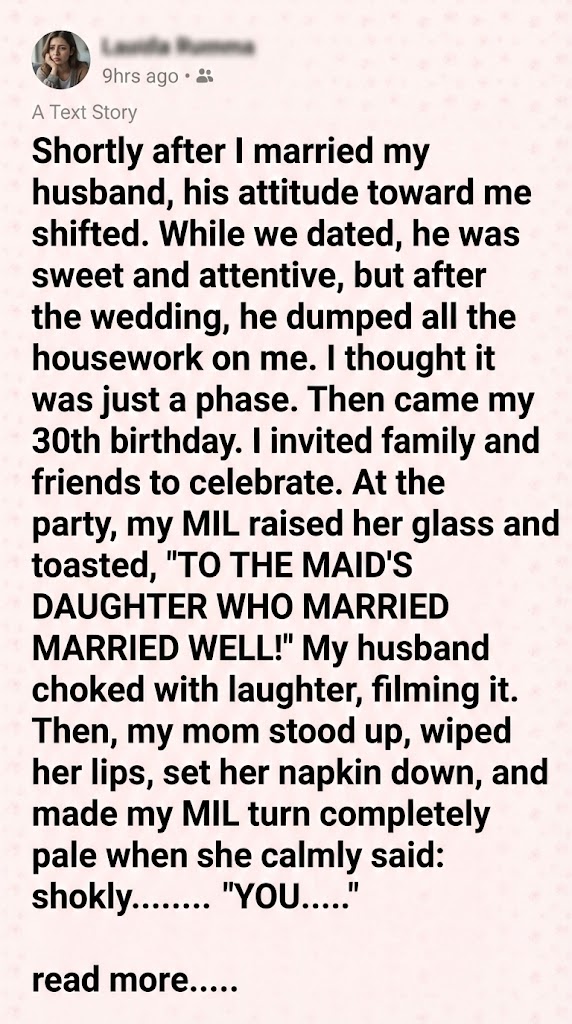 Her words cut like a knife: “To the maid’s daughter who married well!” My husband laughed, filming it. My heart sank. And then—my mother rose, calm and regal, ready to deliver a truth that would shatter their smug little game.