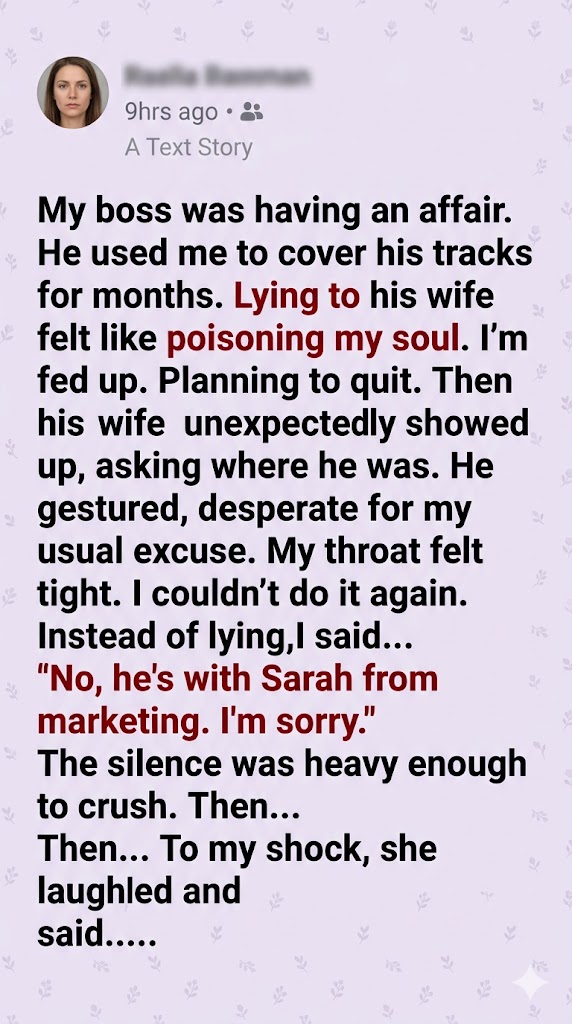 I stood frozen behind my desk, the heavy weight of months of guilt evaporating into thin air. I had spent so many sleepless nights feeling like an accomplice to a crime, agonizing over the moral decay of lying to this woman. And she had known the entire time.