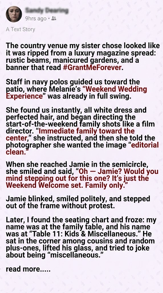 Jamie blinked, confused. Uncle Bob’s girlfriend and my niece’s plus-one stayed in the photo, but Jamie was asked out. He smiled politely and stepped aside.