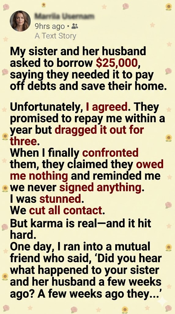 It all started three years ago. I’d just sold my small flower shop, a cozy place I’d built from scratch, and was finally breathing easy. No debt, no stress, just a healthy savings account. Then Lisa called. She and her husband, Rick, were in trouble. They were behind on mortgage payments, close to defaulting on high-interest loans, and terrified of losing their house.