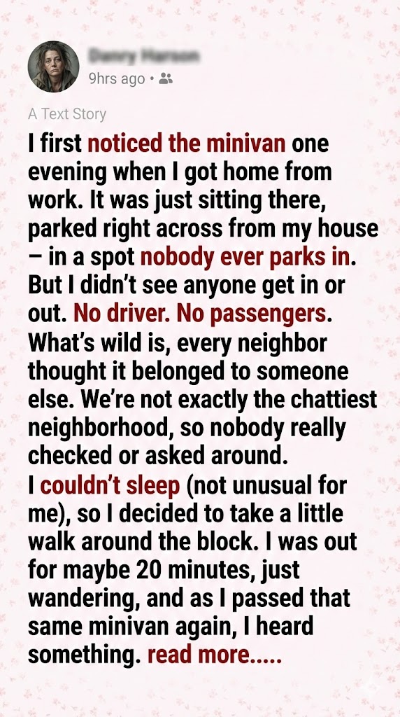 For weeks, a faded red van sat silently across from Catherine’s house in Willow Brook. As a single mother of twin teenage daughters, she was used to ignoring the oddities of suburban life. But this van was different—unmoving, tinted, and eerily quiet. It became a fixture in her daily routine, a shadow she couldn’t shake.