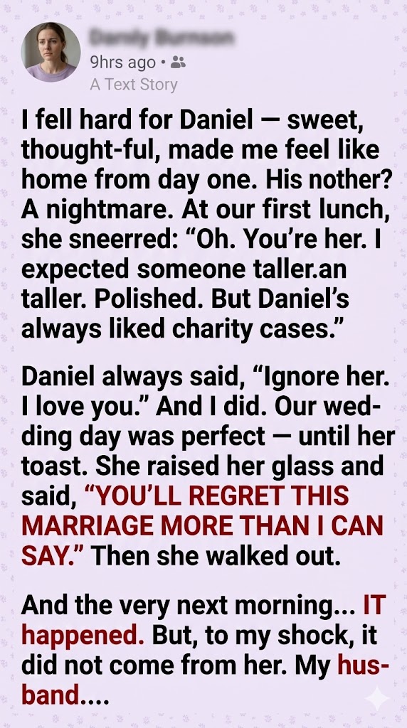 She didn’t use screams or curses; her weapons were sharper. She delivered jabs dressed as observations, constantly implying I was a “broken thing” that her son, with his “giving heart,” was trying to fix. Daniel always defended me in private, telling me to ignore her. “I love you, not her opinion,” he’d say. I believed him.