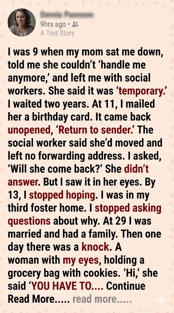 “How could you?” I didnāt step back to let her in. I stood firm in the doorway, blocking the view of my living room, my safe haven, my life. “You sent my birthday card back. Unopened. ‘Return to Sender.’ Do you know what that does to an eleven-year-old kid?”