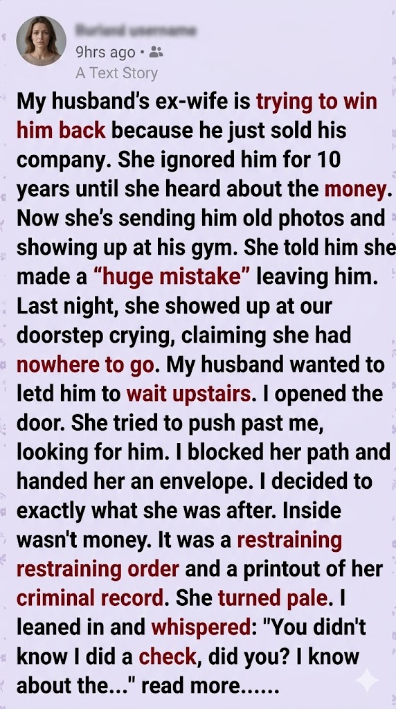 For a long moment, the only sound was the wind rustling through the oak trees in our front yard. Vanessa looked at the door, then at me, calculating her odds. She realized she had entirely misjudged the situation. She wasn’t dealing with her forgiving ex-husband; she was dealing with the woman who protected him.
