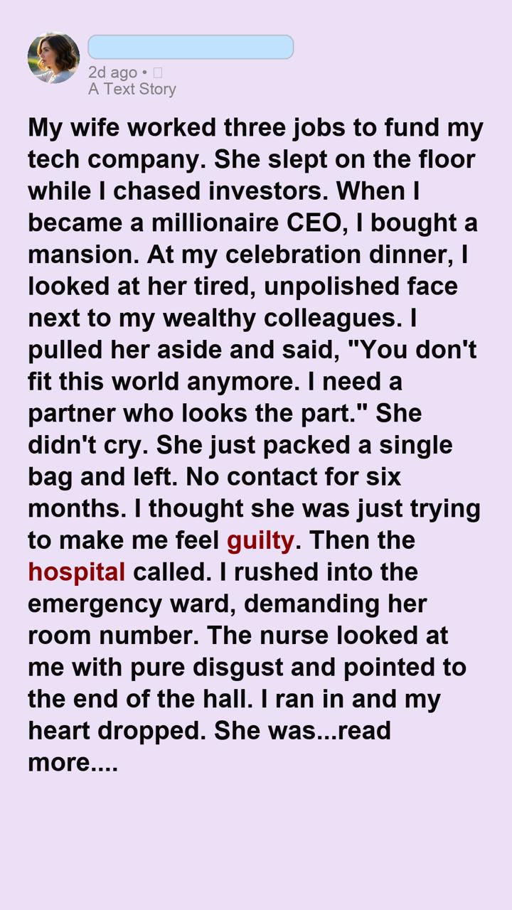 Today, my tech company is valued at over a billion dollars. I live in a sprawling mansion with thirty rooms, and it is the quietest, emptiest place on earth. I sit at the head of boardroom tables surrounded by polished, beautiful people who would abandon me the second my stock dropped. I have everything I ever said I wanted, and I would burn it all to the ground just to sleep on the floor next to her one more time.