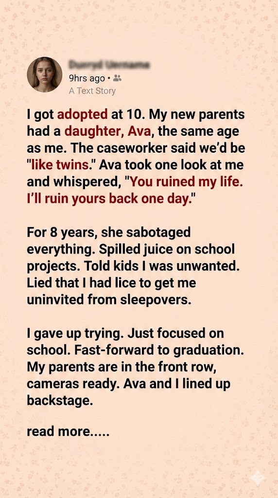 Then came graduation—my moment. I’d worked hard, earned honors, and was ready to celebrate. But Ava had waited for this day. As I stood on stage, she whispered something that shattered me. Then she pulled a stunt that turned the crowd’s cheers into gasps. My triumph became her revenge.