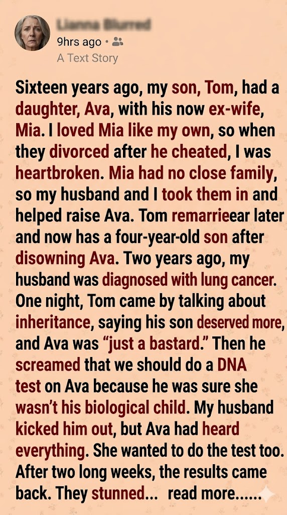 It took two weeks for the paternity test to come back from the lab after Tom handed over his DNA. In the meantime, as we waited, Ava didn’t talk much. Mia tried to stay strong, but I heard her crying in her room at night. Gary just held Ava’s hand every chance he got.